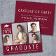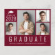 Mínimo e moderno anúncio de formatura vermelho-burgundy e com orçamento, apresentando uma colagem de 4 fotos, "Formando" escrito em letras brancas grandes e seu ano de aula, nome e escola ou universidade em tipografia branca simples. Adicione os detalhes da parte no verso.