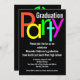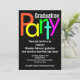 Convite de festas fluorescente e festivo neon brilhante é excelente para garotas adolescentes, meninos ou adultos que estão tendo uma discoteca festiva divertida e futurista ou festas de formatura de temas dançantes. Fundo preto com letra fluorescente neon fluorescente, de cor clara, e um estilo de texto moderno.