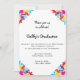 Convide convidados para comemorar seu segundo grau ou formandos recente em estilo com o Convite de Festa de formatura de Cantos Florais contemporâneos. Personalize-o com o nome pessoal do formando e informações específicas do evento. Este convite de festa de formatura fofo e personalizado apresenta um design de vetor floral colorido e brilhante.