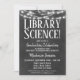 Um divertido convite para a festa de formatura da biblioteca de quadros brancos e negros com luzes brilhantes no topo.