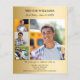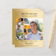 Crie sua própria colagem de fotos exclusiva. Use quatro, quatro das suas fotos favoritas. Personalize e adicione um nome e detalhes da parte. Um fundo de aparência dourada, texto preto. 1 folha = 1 convite impresso de borda a borda.