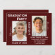 Este convite contém 2 fotos para dois formandos. As festas de formatura conjuntas estão se tornando uma coisa comum e este convite permite uma configuração fácil para uma dupla parte. O esquema de cores principal é branco e marrom-vermelho e a design geral é simples e hetero para a frente.
