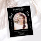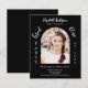 Personalize e adicione uma dentro de foto ao arco, nome, nome da escola, classe e detalhes da festa. Fundo preto, texto branco. 1 folha = 1 convite impresso de borda a borda.