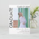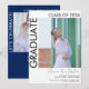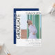 Anunciamento de dois graus de fotografia minimalista moderno e Formando o Convite de festas com texto preto sobre fundo branco. O verso é azul marinho com texto branco