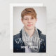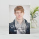Cartão de Convite para Festa de formatura de Fotografia com Tipografia Retroativa para formandos machos com um design de camada simples. Elke Clarke © Personalize com suas informações de formando selecionando personalizá-las ou use os prompts do menu modelo. Troque a foto de exemplo por sua. Design flexível para permitir a escolha de vários tamanhos diferentes de placas, dependendo da sua foto do seu formando.