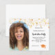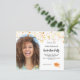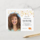 Adicione sua própria foto vertical do formando. Um quadro fotográfico em forma de arco. Uma cor de fundo branca clássica, decorada com estrelas douradas falsas. Personalize e adicione um nome e detalhes da parte.