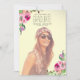 Convide seus convidados com este convite de festa de formatura de fotos florais cor-de-rosa-chic para comemorar a graduação do segundo grau de sua filha. Design por Elke Clarke © Visite nosso compro www.zazzle.com/monogramgallery* para mais designs e estilos. Adicione sua própria foto e texto. Substitua a foto de exemplo por sua.