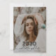 Um convite moderno e elegante para festa de formatura fotográfica com seu ano de turma de graduação, e um roteiro elegante, nome, ano de aula e universidade. Carregue sua própria foto de graduação criativa em uma orientação vertical para retratos. O ano da classe é ousado, mas fantasma em branco para um efeito maleável etéreo.