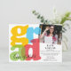 Apresentando suas duas fotos de formando favoritas, este moderno convite para festas de formatura coloridas pode ser personalizado com suas fotos de formando e detalhes de celebração. Projetado por Thisnotme©