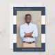 Marinho preto e clássico e convite para festa de formatura de listras brancas apresenta uma faixa de fotos e pré-disquete.
