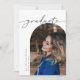 Hora de comemorar o novo boné e formando vestido com um convite personalizável para festa de formatura de fotos DIY. Edite seu monder, convite de festas minimalista de formando de fotos em arco com todos os detalhes da festa de formatura. Este convite para festa de formatura de fotos editável define o tom para sua celebração de graduação. A coleção do VEDA apresenta um fundo branco com uma foto de arco do formando na frente, e uma grade de quatro fotos no verso juntamente com todos os detalhes da festa de formatura, combinados com um emparelhamento de uma serif sans moderna e uma letra de script calligrpahy em preto. O convite para festa de formatura de fotos moderno inclui campos editáveis para o nome do formando, data, hora e local da festa de formatura, informações de rsvp e fotos do formando.