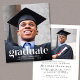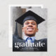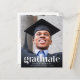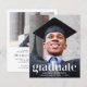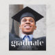 Um anúncio de graduação e convite de festas modernos e amigáveis ao orçamento que mostra a foto de seu formando sobreposta com "Formando" em grande texto branco de tendência e seu nome, escola e ano de aula em uma simples tipografia branca. No verso, adicione uma foto adicional e os detalhes da parte de formando.
