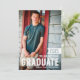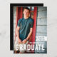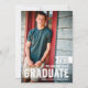 Um design simples e moderno que apresenta a foto do seu formando na frente com todos os detalhes da festa ou do anúncio no verso. Tendência, design de tipografia contemporânea com um sentimento masculino. Um anúncio casual, mas sofisticado que destaca seu filho e sua celebração de graduação.