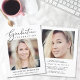 Elegante anúncio de formatura e convite de festas de uma garota, amigável em orçamento, com "Celebração de Graduação" em elegante roteiro e tipografia, sua foto e seu nome, ano escolar e de aula em uma simples tipografia moderna. No verso, adicione outra foto e os detalhes da festa de formatura.
