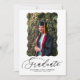 Comemore seu marco acadêmico com estilo com o Convite para Festa de formatura do Modern Script 2 Photos. Este convite chic combina uma tipografia elegante e fluente com um layout limpo e contemporâneo — com dois espaços distintos para fotos para mostrar suas memórias favoritas. Ideal para festas de formatura, ele oferece um toque personalizado que permite destacar suas conquistas e sua jornada única. Com opções de texto personalizáveis e uma estética design moderna, esse convite é perfeito para dar o tom de uma celebração inesquecível.
