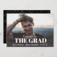 Comemore seu formando com este incrível convite para a formatura, com sua foto e ousadia na frente. A parte traseira apresenta os detalhes da sua parte moldados por um plano de fundo gravado (altere facilmente a cor do plano de fundo clicando em personalizar e, em seguida, rolando para baixo para o selecionador de cores). Moderno e ousado, porém clássico e simples - o convite/anúncio perfeito para celebrar suas conquistas de formando.