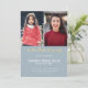 Um convite para fotos de formatura com a foto mais nova ou mais gentil do seu filho ao lado da foto atual, realmente mostra como o tempo passa num piscar de olhos. É divertido comparar as duas fotos e mostrá-las a participantes que talvez não tenham conhecido seu formando como uma criança. Uma maneira perfeita de refletir sobre onde eles estiveram e para onde eles estão indo. A caligrafia de folha de ouro e um fundo azul empoeirado mantêm este convite de celebração de festas de formatura fresco e moderno.