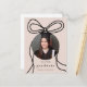 Este elegante convite de festa de formatura preto-e-branco, cor-de-rosa, apresenta um arco preto-chic com uma fotografia circular moderna, num simples fundo cor-de-rosa, e detalhes de festa de formatura com endereço de retorno no verso.