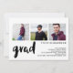 Um design nítido, limpo e moderno apresenta espaços para uma colagem de três fotos em um estilo minimalista preto e branco contemporâneo que é perfeito para o seu formando. O texto "formando" do pincel adiciona um toque de moda. Mostradas como um convite de festa de formatura, todas as linhas de texto podem ser personalizadas para mudar facilmente para um anúncio.