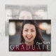 Este moderno convite elegante para festa de formatura de fotos de na moda apresenta uma foto horizontal e um título móvel com o nome de script personalizável e o texto na frente. O verso tem um convite com detalhes de festa de formatura e uma foto horizontal de perda de cheio desbotada. Uma forma excelente de mostrar seu formando. Clique no botão editar para personalizar este design.