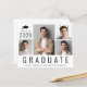 Anúncio de graduação e convite de festas modernos e amigáveis ao orçamento, apresentando uma colagem de 4 fotos, "Formando" escrito em letras grandes e o seu ano de aula, nome e escola ou universidade em tipografia simples. Adicione os detalhes da parte no verso.