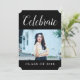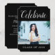 Convite à Festa de formatura de Fotografias moderna com um design de modelo de fotografia simples e fresco a preto. Adicione uma foto e detalhes de festa de formatura para personalizar. A cor de fundo no verso do convite pode ser alterada para complementar a foto ou para adicionar uma cor escolar.