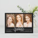 Um design nítido, limpo e moderno apresenta espaços para três fotos grandes na frente e uma foto menor na parte de trás, em preto e branco clássico. Um olhar contemporâneo perfeito para o seu formando. Mostradas como um convite de festa de formatura, todas as linhas de texto podem ser personalizadas para mudar facilmente para um anúncio.