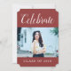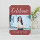Convite à Festa de formatura de Fotografias moderna com um design de modelo de fotografia simples e fresco em burgundy. Adicione uma foto e detalhes de festa de formatura para personalizar. A cor de fundo no verso do convite pode ser alterada para complementar a foto ou para adicionar uma cor escolar.