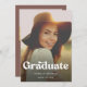 Este é um convite de festas de formandos inspirado em retrô e vintage usando uma fonte retrô em negrito juntamente com uma foto minimalista do solteiro. O verso inclui uma mensagem que você pode personalizar, juntamente com outra foto. Este design aplica um filtro à sua foto, para modificar ou remover esse filtro, pressione o botão design de edição azul e acesse as configurações do filtro. Entre em contato com o designer para obter informações relacionadas a este design.