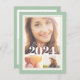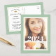 Cartões postais de convite de festa de formatura impressos personalizados do barato. Esta design feminina chic tem um modelo de 3 fotos na frente com os detalhes do convite de festas formando no verso em preto e dourado em um fundo verde-sábio. Use as ferramentas de design para escolher as fontes e cores que você quiser ou carregar mais imagens para criar um anúncio de graduação totalmente personalizado.