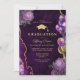 O Elegante Dourado Agate Agate Foto Festa de formatura Invitation apresenta lindas tons azuis de balões festivos, geodo gemstone e delicados rosas liláticos com alças de ouro e boné de formatura. Apresentar uma foto favorita do formando na parte de trás do convite à formatura.