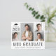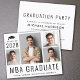 Anúncio de graduação e convite de festas do MBA moderno, orçamental, com mestrados de graduação em 4 fotos, "Formando MBA" escrito em letras grandes e seu ano de aula, nome e escola ou universidade em tipografia simples. No verso, adicione os detalhes da parte.
