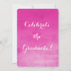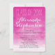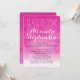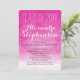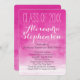Fundo de cor-de-água rosa brilhante, vibrante e excitante, fuchsia, com texto vertical branco e convites de festa de formatura de script. Linda representação artística de cores femininas femininas femininas femininas expressivas e artísticas.