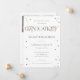 Este convite para festas de formatura é perfeito para um formando se formar com um curso de enfermagem RN. O convite para a formatura diz "Por favor, junte-se a nós para uma festa que comemora o Diploma de ...", destacando o RN na palavra graduação com uma letra de script elegante. O fundo branco com sotaques de ouro e bolinhas branca cria um tom sofisticado e elegante para a celebração. O verso desse anúncio de graduação tem um ponto para duas fotografias e uma mensagem mais longa junto com um título inteligente que lê "eaRNed it" enfatiza o RN na frase, combinando o texto na frente do anúncio. As costas são perfeitas para acrescentar uma mensagem de gratidão ou destacar as realizações do formando ou planos futuros.