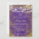 Um convite roxo e festa de formatura de ouro ricamente abaulado, com um fundo metálico falsa angustiado com luzes suspensas. Esse convite para a classe de graduação é perfeito para a celebração de segundos graus, universidades, faculdades ou qualquer tipo de formando escolar.