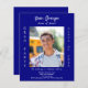 Personalize e adicione uma foto, nome, nome da escola, classe e detalhes da festa. Um fundo azul marinho, texto branco. 1 folha = 1 convite impresso de borda a borda.