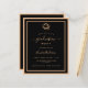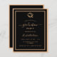 Um moderno, elegante e convite. Um fundo preto decorado com quadros de ouro e um boné. Personalize e adicione um nome e detalhes da parte. Texto branco.