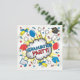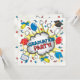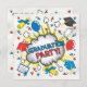 Para o formando que quer algo divertido, diferente e original! A revista em quadrinhos inspirou um convite de festa de formatura com explosão de nuvens de bonés, diploma, certificado, balões e confete. As costas guardam as informações do seu partido. Ilustração desenhada à mão por McBooboo.