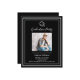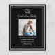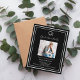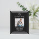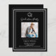 Fundo preto, decorado com uma estrutura de cinza e um boné de formatura. Personalize e adicione um nome de foto e detalhes. Texto branco. 1 folha = 1 convite impresso de borda a borda