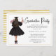 Convite para Festa de formatura de Script Casual Moderno - Tipografia de script moderna com um design mínimo. Uma bela formando está segurando seu diploma e um buquê de rosas cor-de-rosa. A placa é realçada com uma borda fina em ouro. O Convite à festa de formatura faz parte de uma coleção.