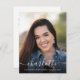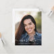 Este anúncio de graduação apresenta uma fonte simples de script. Todo o texto pode ser personalizado na parte frontal e traseira da placa. Adicione uma foto do formando para criar o convite perfeito para a festa de formatura.
