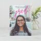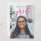 Celebre sua graduação em estilo com este Na moda moderno convite duplo! A frente apresenta um design minimalista com ousado "Formando" escrito à mão, cor-de-rosa magenta, na caligrafia moderna, colocado sobre uma grande foto do formando, enfeitiçado com confete lúdico. Você pode facilmente substituir a foto e o texto por sua própria. O verso inclui um grande "Hooray!" na tipografia escrita à mão, cor-de-rosa magenta, sobre um fundo preto elegante, com fontes modernas a preto e branco para detalhes de partidos, e um roteiro cor-de-rosa para o nome. Todos os elementos são colocados contra um pano de fundo preto-e-branco. O formato de download digital também está disponível para sua conveniência.