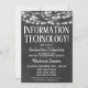 Um divertido convite para festa de formatura de Tecnologia da Informação em outdoor preto e branco com luzes brilhantes no topo.