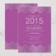 Convite formal de festa de formatura com um moderno cebola prateado, de cima e de baixo, sobre fundo roxo. Sacudir nosso convite para o na moda para encontrar uma resposta para um toque especial extra. Também pode ser usado para um anúncio de graduação. Fácil de personalizar com a sua classe de informações de formando 2015. Disponível em nosso compro em uma variedade de cores populares de segundo grau e faculdade.
