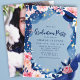 Celebre o feito do formando com este elegante convite para festas de formatura. O design apresenta uma bela mistura de sotaques florais de cor azul-marinho e cor-de-rosa, criando uma sensação sofisticada e comemorativa. Uma dispersão química de estrelas complementa a fonte moderna do roteiro, definindo os detalhes do evento. Personalize este modelo com informações específicas de nome, data, local e RSVP.