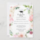 Cor d'água elegante, flores cor-de-rosa esfarelado e estrutura foliar verde, convite para festas de formatura. O estilo e a cor da fonte podem ser personalizados. A parte traseira da placa apresenta o padrão de faixa de cor-d-água rosa-chic.