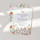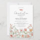 Convite para festa de formatura floral elegante. Design apresenta um fundo branco clássico, decorado com flores de cor d'água cor de rosa e pêssego e verde botânico, um pequeno e bonito modelo de motonboard e festa de formatura que é fácil de personalizar com seus próprios detalhes de evento.