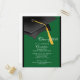 Inicie seu evento com nosso boné de formando preto e na moda com uma borda preta com um convite para Placa de Posta de festa de formatura verde. Convite perfeito para graduação ou formandos. Apenas preencha suas informações adicione sua foto e você está pronto para ir. Visite nosso compro em www.celebrateitgraduations.com para uma grande variedade de convites para formatura! gráficos ©BELDS_Dodles