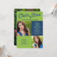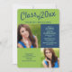 Convite para festa de formatura de fotos azul verde limão e marinho. Adicione duas fotos à frente e uma às costas.