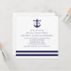Estes convites brancos e marinhos são perfeitos para uma festa de formatura temática de cruzeiro. A design apresenta uma tipografia elegante clássica ao lado de um monograma de âncora de marinho.